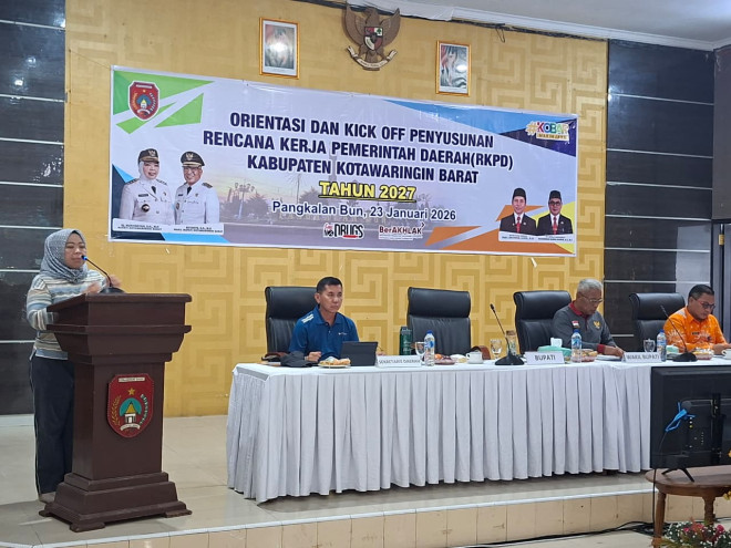 Pangkalan Bun, kaltengberkah.id – Pemerintah Kabupaten Kotawaringin Barat (Kobar) melalui Badan Perencanaan Pembangunan, Penelitian dan Pengembangan Daerah (BAPPERIDA) menggelar kegiatan orientasi penyusunan Rencana Kerja Pemerintah Daerah (RKPD) Tahun 2027 di Aula Marundau, Jum’at (23/1/2026).