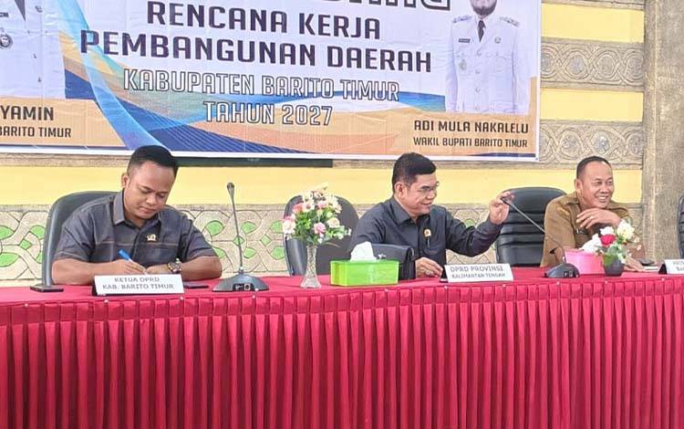 Tamiang Layang, kaltengberkah.id – Anggota DPRD Provinsi Kalimantan Tengah, Ampera AY Mebas, menegaskan pentingnya sinkronisasi antara program pembangunan daerah dengan Rencana Kerja (Renja) perangkat daerah. Hal ini disampaikan dalam Musyawarah Perencanaan Pembangunan (Musrenbang) RKPD Tahun 2027 yang digelar Pemerintah Kabupaten Barito Timur di Aula Bapplitbangda, Selasa (10/3/2026).