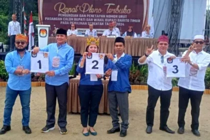 Tamiang Layang, kaltengberkah.id – Komisi Pemilihan Umum (KPU) Kabupaten Barito Timur, Kalimantan Tengah, resmi menetapkan nomor urut tiga pasangan calon peserta Pemilihan Kepala Daerah (Pilkada) Bari...
